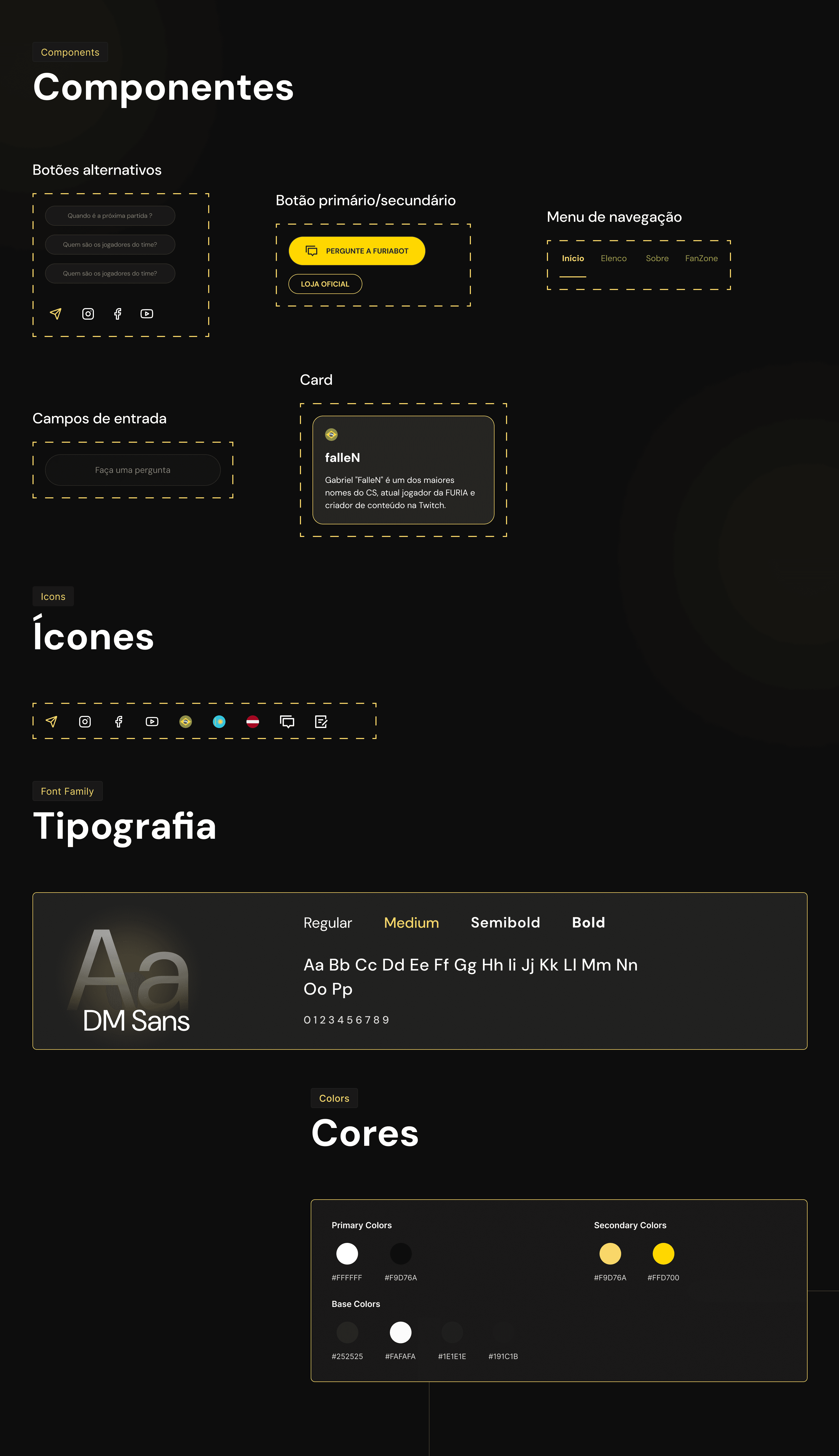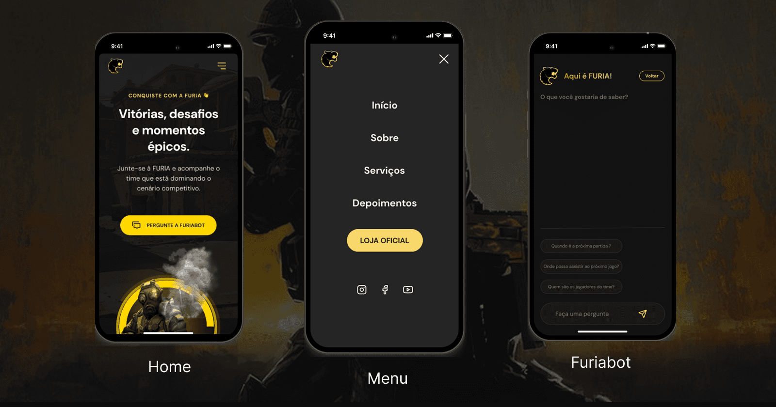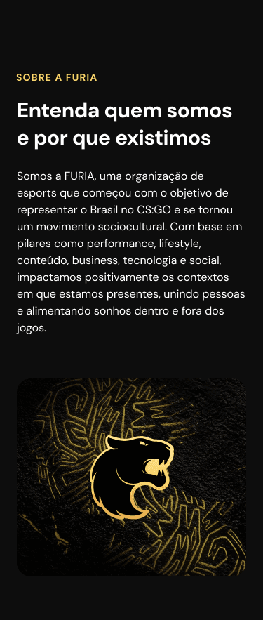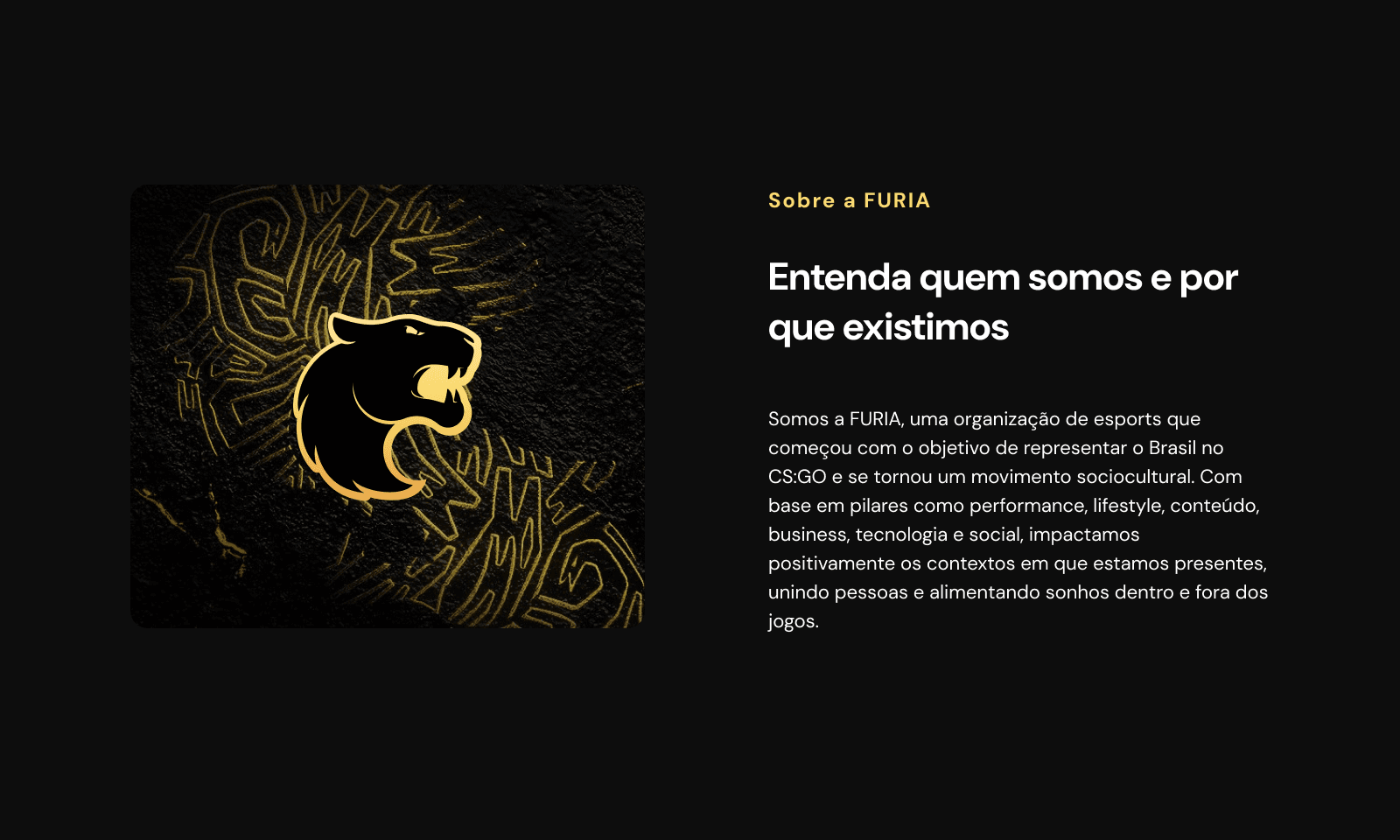 The FURIA landing page was designed to offer CS:GO fans an immersive and interactive digital experience. The project combines design and technology to strengthen the connection between the team and its community, featuring a bold black and gold aesthetic.