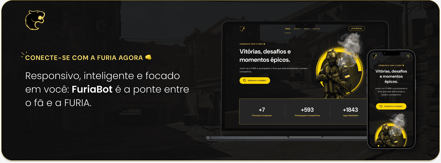 A landing page da FURIA foi criada para oferecer aos fãs do time de CS:GO uma experiência digital imersiva e interativa. O projeto une design e tecnologia para fortalecer a conexão entre a equipe e sua comunidade, com um visual marcante nas cores preto e dourado.